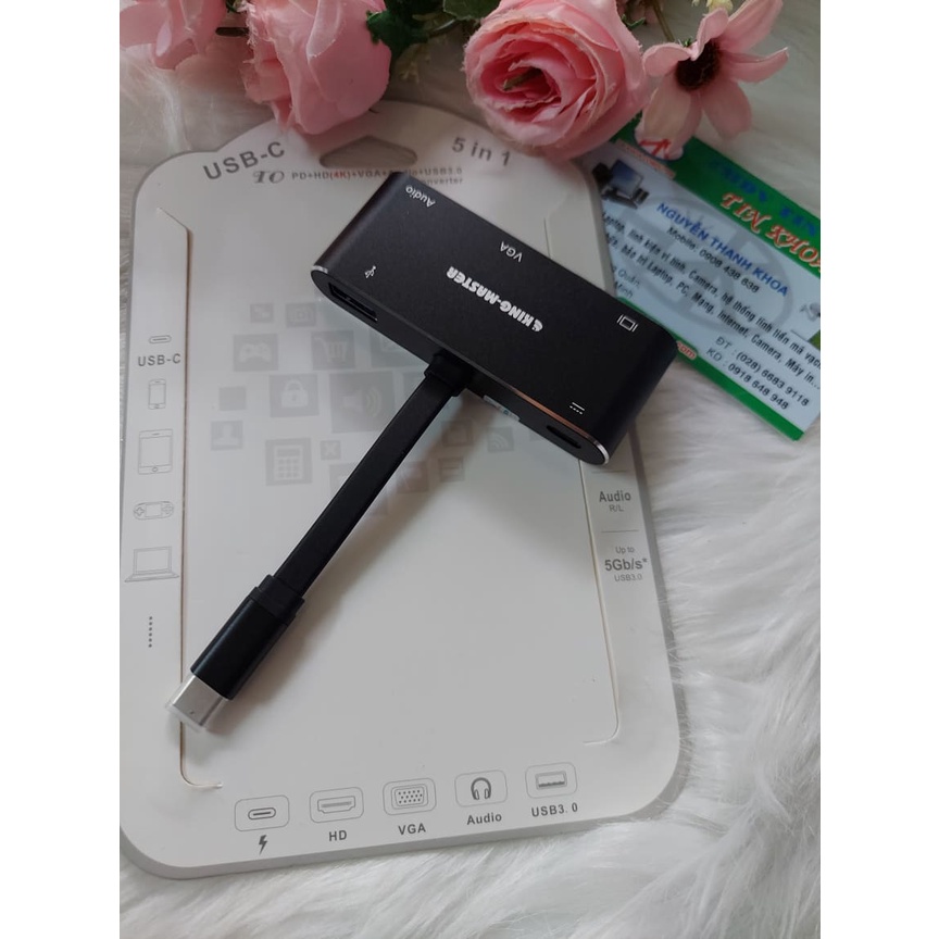 (Cáp type c) USB Hub Type C -> HDMI + VGA + USB 3.0 + PD Kingmaster KY-V126B