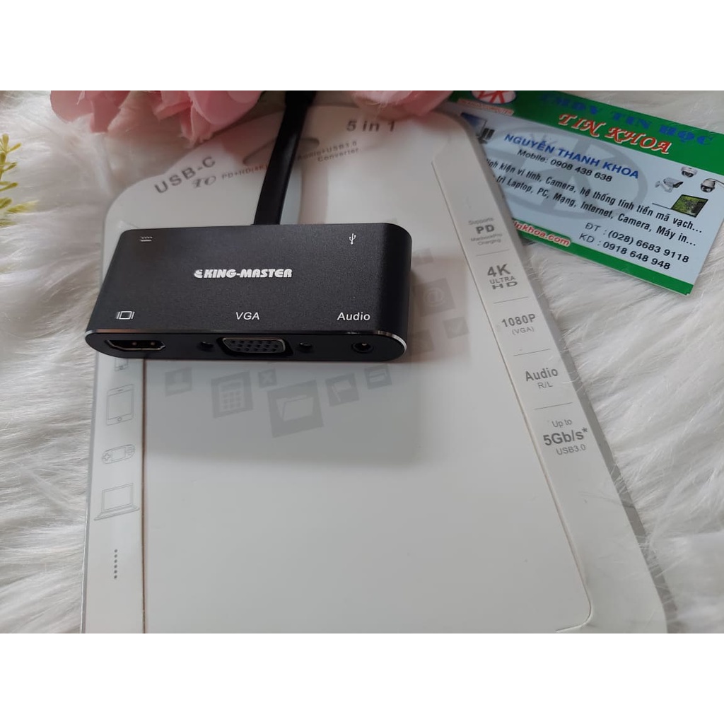 Máy tính & Laptop > Thiết Bị Lưu Trữ > USB & OTG || (Cáp type c) USB Hub Type C -> HDMI + VGA + USB 3.0 + PD Kingmaster KY-V126B.Chuyển type C sang hdmi/vga/usb/pdCòn hàng