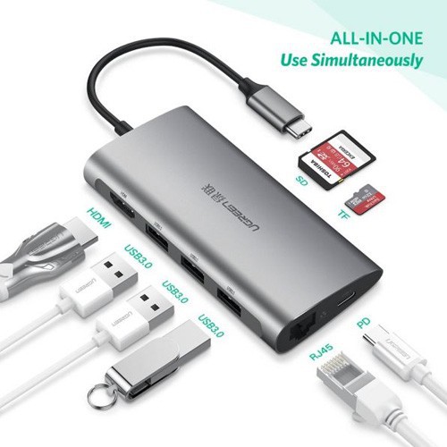 Thiết bị mở rộng USB type-C sang HDMI/Ethernet/Hub USB 3.0/Card SD/TF Ugreen 50538 cao cấp