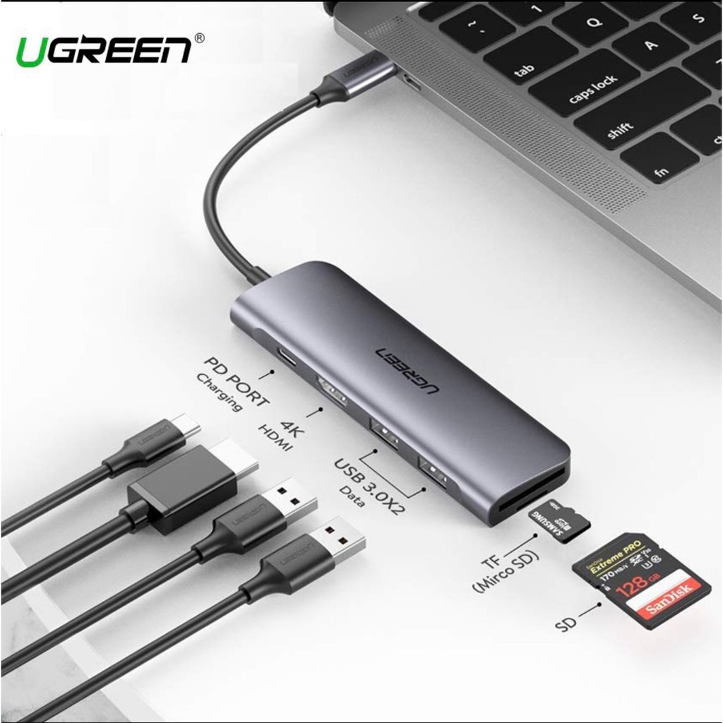 Máy tính & Laptop > Thiết Bị Lưu Trữ > USB & OTG || [Mã 253ELSALE hoàn 7% đơn 300K] Cáp Ugreen Usb-C Sang HDMI 4K,2 USB 3.0 Ports,SD/TF Card Reader,100W PD [6 in 1] 70411Còn hàng