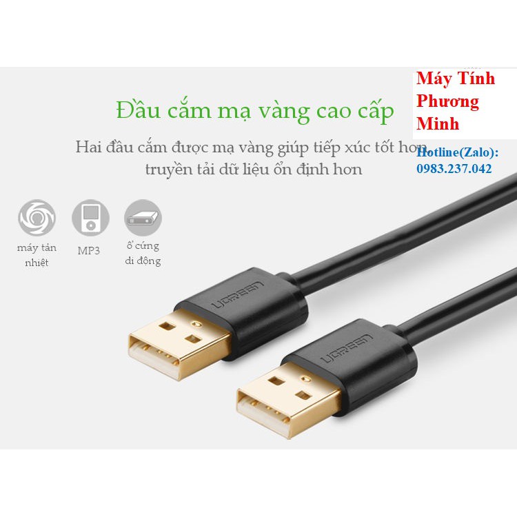 Cáp USB 2.0 2 đầu đực dài 0.5m UGREEN 10308- bảo hành chính hãng 12 tháng