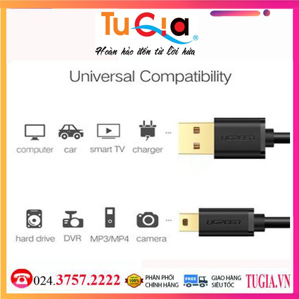 Máy tính & Laptop > Thiết Bị Lưu Trữ > USB & OTG || Cáp USB 2.0 to mini USB Ugreen 10354 0.5M-Hàng Chính HãngCòn hàng
