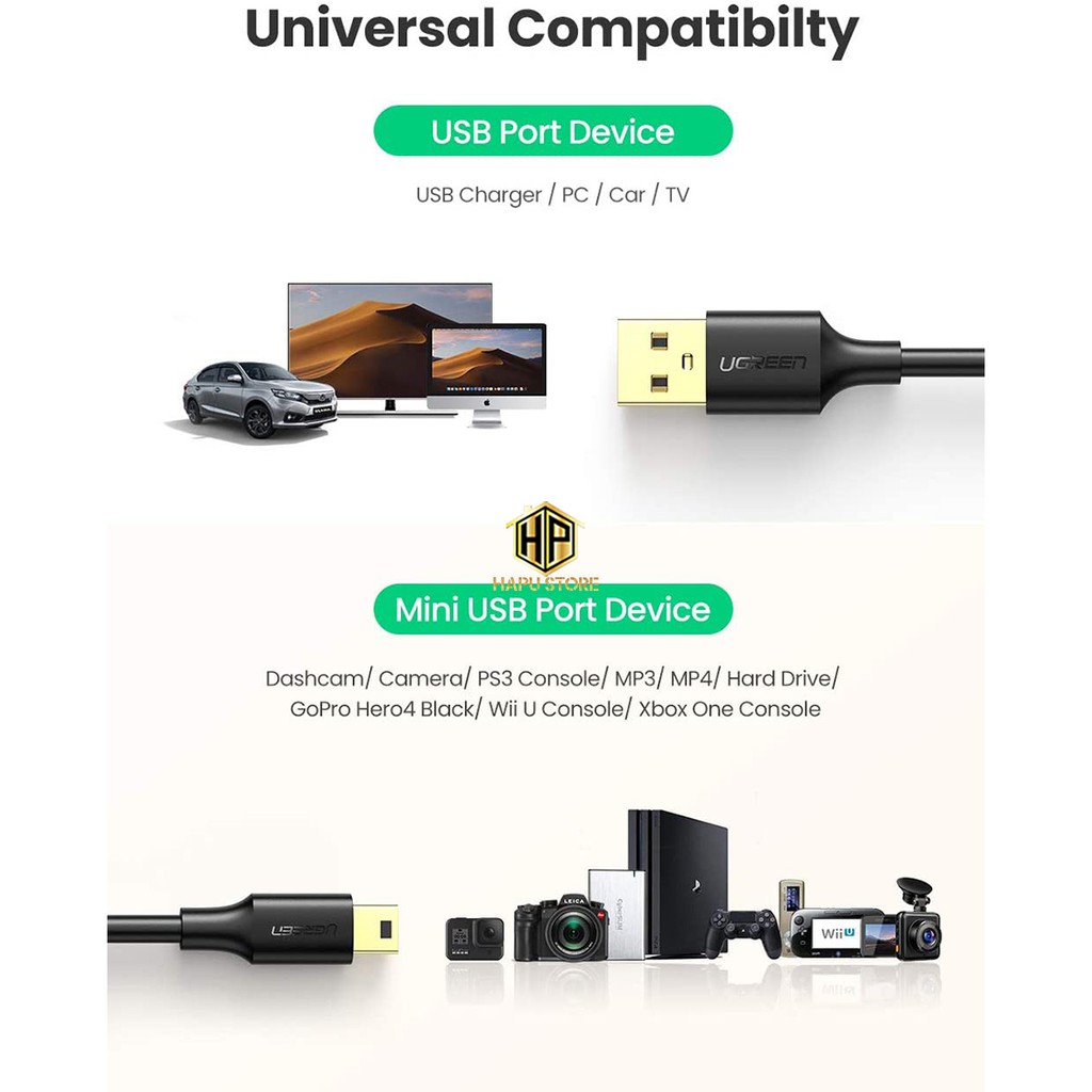 Giới thiệu Cáp USB 2.0 to USB Mini Ugreen 10386 dài 3m mạ vàng chính hãng - Hapustore
