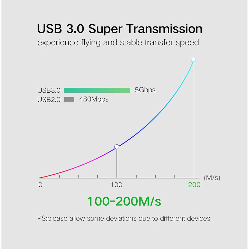 -Cổng USB 3.0 cho phép kết nối dễ dàng các thiết bị ngoại vi với Laptop, PC, Smart TV như chuột, bàn phím, tay cầm chơi game... Tốc độ truyền tải của cổng USB 3.0 lên đến 5Gbps ( gấp 10 lần so với cổng USB 2.0)