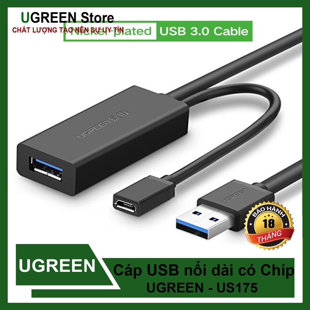 Giới thiệu [Mã 155ELSALE giảm 7% đơn 300K] Cáp USB 3.0 Nối Dài Có IC Khuếch Đại Cao Cấp Ugreen US175