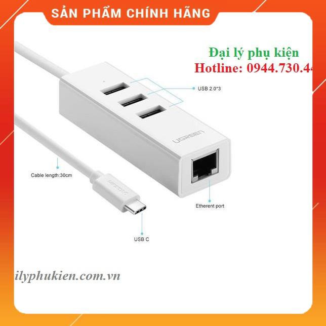 Thông tin sản phẩmCáp USB Type C ra 3 cổng USB 2.0 hỗ trợ Lan 10/100Mbps chính hãng Ugreen UG-20792 cao cấp