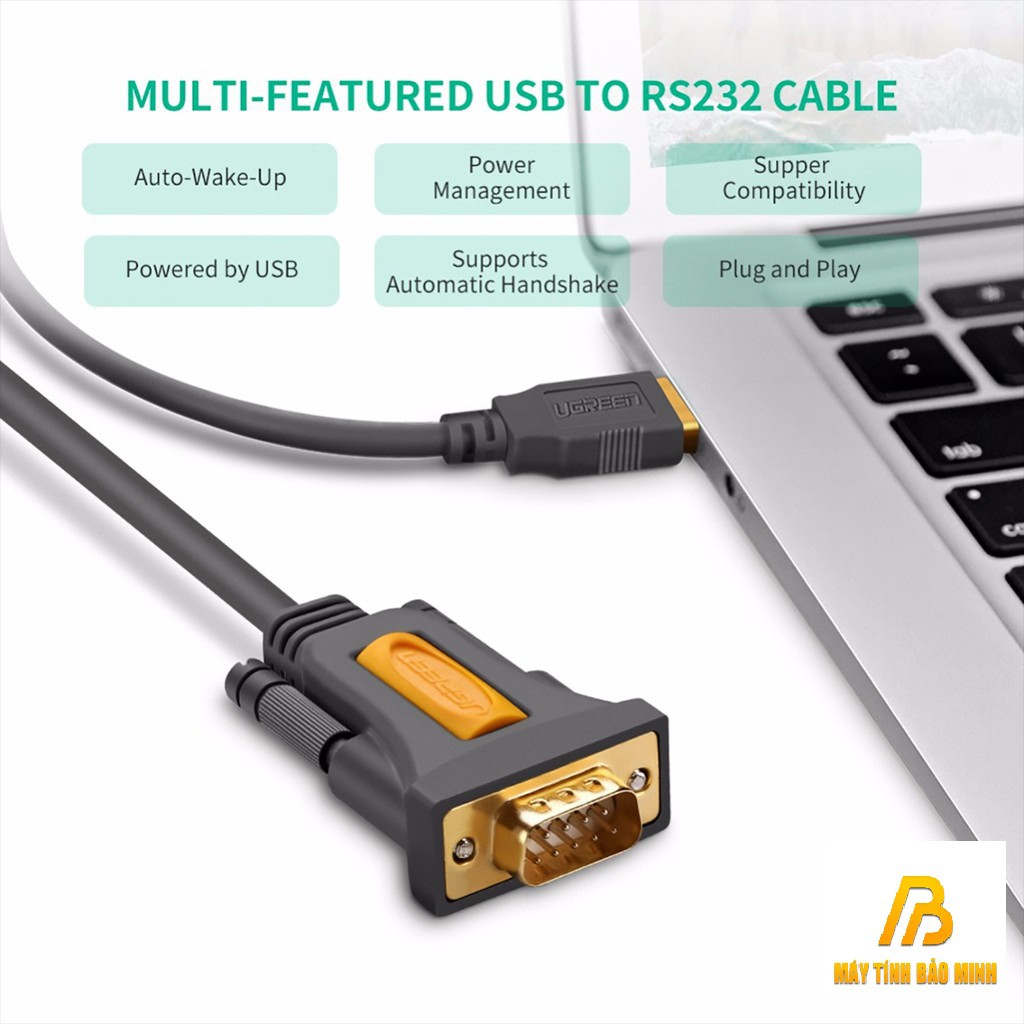 - Cáp USB to Com (RS232) dài 2m Ugreen 20218 được sản xuất theo công nghệ tiêu chuẩn, cho tốc độ truyền dữ liệu lên tới 1 Mbps, hỗ trợ hầu hết các hệ điều hành win 98/ 2000/ xp/ 7/ 8/ 8.1/ 10/ Mac OS V9.0/ Linux.
