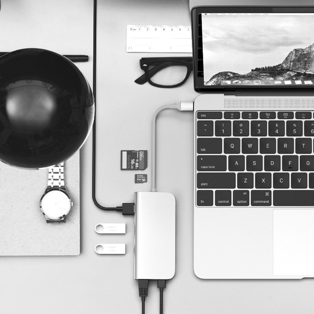 Máy tính & Laptop > Phụ Kiện Máy Tính > Bộ chia cổng USB & Đọc thẻ nhớ || Cáp Usb Type C Chính hãng Letouch Multi Port Adapter 8 in 1 (xám)Còn hàng