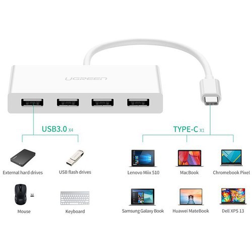 Máy tính & Laptop > Thiết Bị Lưu Trữ > USB & OTG || [Mã 253ELSALE hoàn 7% đơn 300K] Cáp USB Type C Sang 4 Cổng USB 3.0 Ugreen 40379 - Hàng Chính HãngCòn hàng