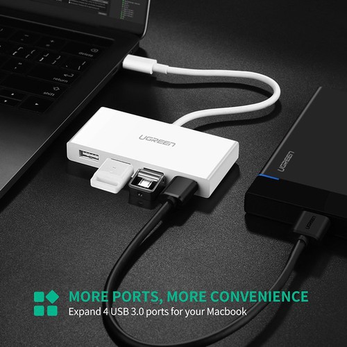 - Cáp Ugreen 40379 với chức năng chuyển đổi cổng USB Type C trên máy tính Laptop, Macbook sang 4 cổng USB 3.0 kết nối bàn phím, chuột và các thiết bị ngoại vi sử dụng cổng USB dễ dàng. Sử dụng đơn giản, chỉ cần cắm và dùng, không cần cài đặt.
