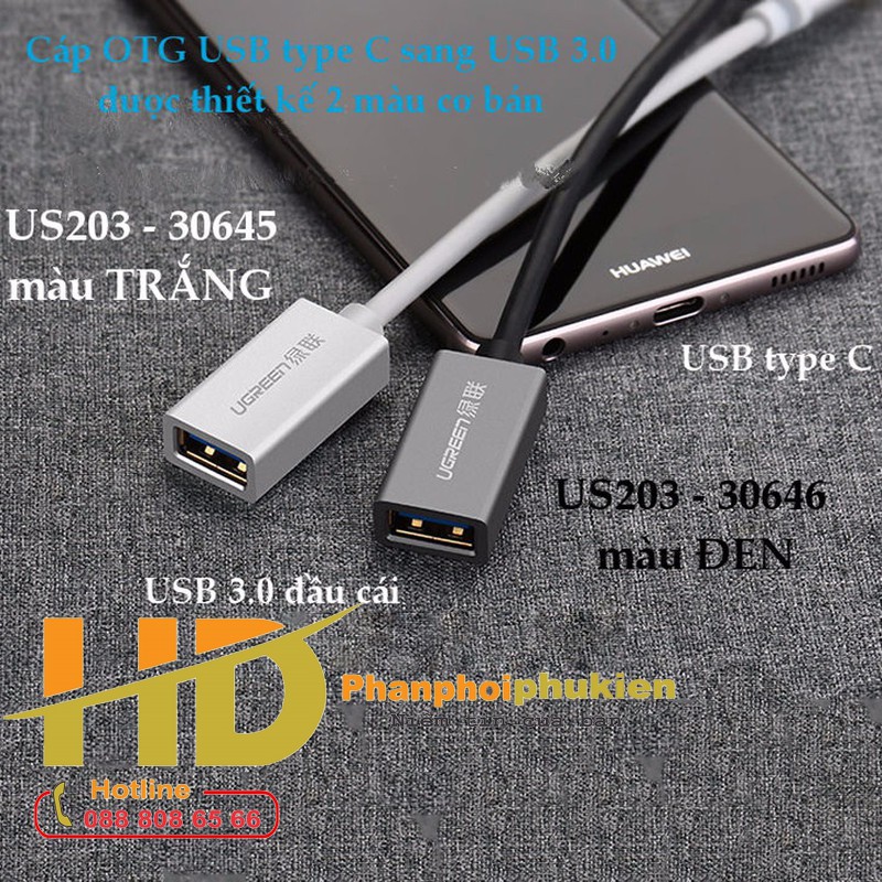 Cáp OTG USB Type C sang USB 3.0 chuẩn A cổng âm Ugreen 30645