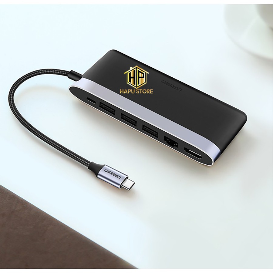 Cáp USB Type C to HDMI, Lan, USB 3.0, hỗ trợ sạc USB C Ugreen 50989 chính hãng - Hapustore