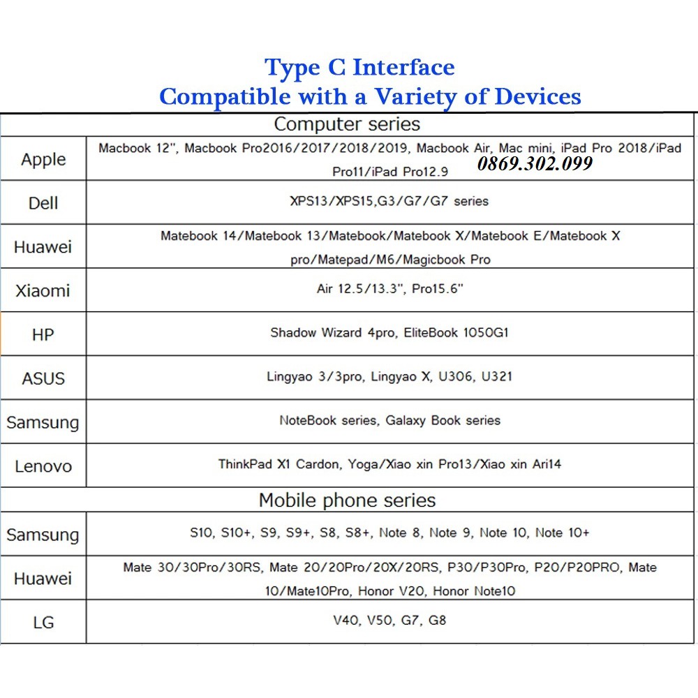 Và các máy tính xách tay hoặc điện thoại di động USB3.1 TYPE C có hỗ trợ đầy đủ chức năng .....