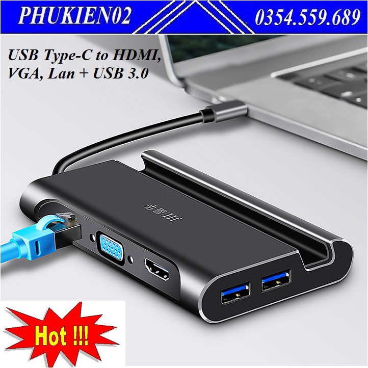 Máy tính & Laptop > Thiết Bị Lưu Trữ > USB & OTG || Cáp USB Type-C to HDMI, VGA, Lan + USB 3.0 All in One JH-Z326 dùng cho máy tính xách tay hoặc điện thoại di độngCòn hàng