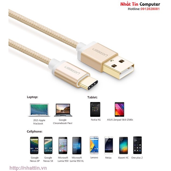 Cáp USB Type-C to USB 2.0 dài 0,5m màu Gold chính hãng Ugreen UG-20859 cao cấp