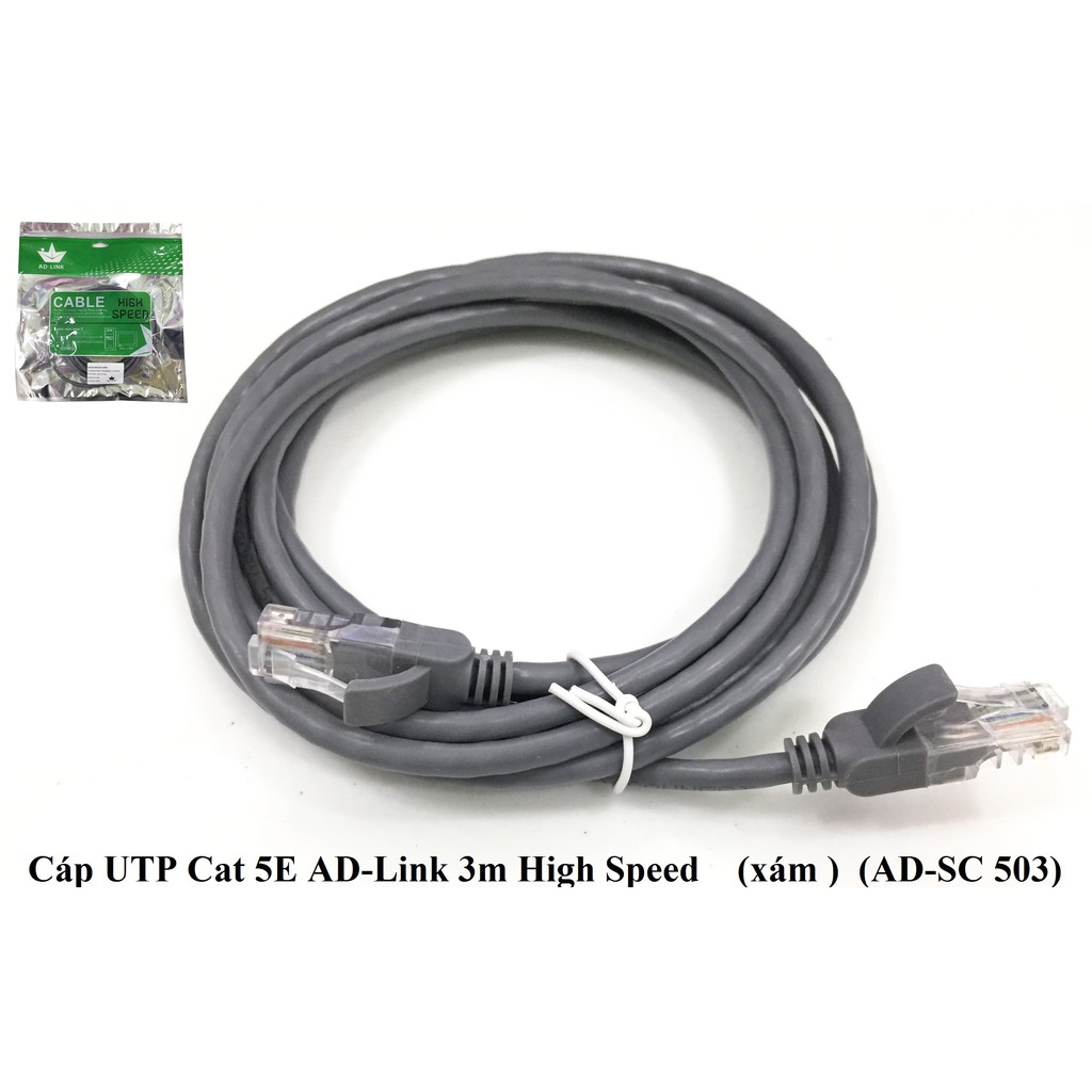 Máy tính & Laptop > Thiết Bị Lưu Trữ > USB & OTG || Cáp UTP Cat 5E AD-Link 3m High Speed (xám ) (AD-SC 503)Còn hàng