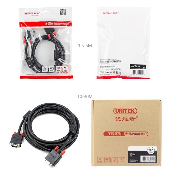 Cáp VGA 2 đầu đực 50m Unitek sản phẩm Chính Hãng