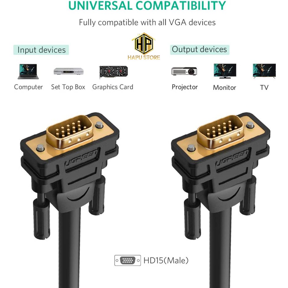 Giới thiệu Cáp VGA Ugreen 11646 dài 2m hỗ trợ Full HD chính hãng - Hapustore