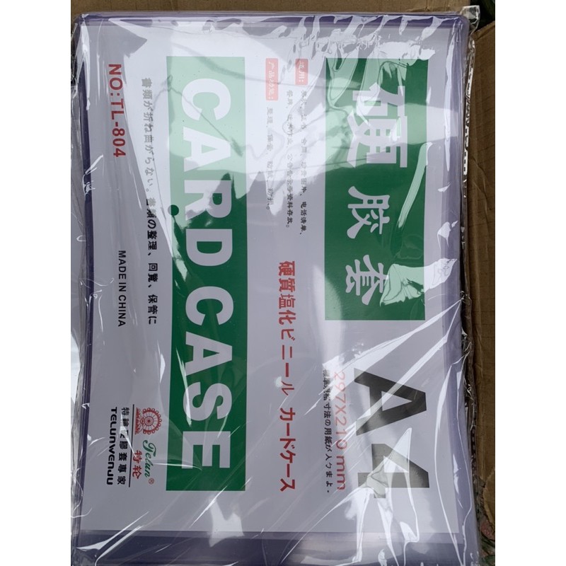 Cardcase A5, A4, A3 là dạng file mở hở một cạnh, được làm từ nhựa có độ mềm và độ dày vừa đủ để cho vừa tờ giấy từ A5, A4 hoặc A3, luôn đảm bảo giấy được giữ phẳng, đẹp, có thể sử dụng đi, sử dụng lại nhiều lần. Cardcase được sử dụng phổ biến trong các nhà máy, xí nghiệp dùng để dán các thông báo, các quy định, các thông tin được cập nhật... từ ngoài trời đến trong nhà xưởng mà không lo bị rách hoặc tránh được ẩm ướt do trời mưa. Cardcase có ưu việt hơn các loại file mỏng khác như túi cúc, túi sơmilỗ, file rút gáy ở chỗ chất liệu nhựa của nó dày hơn, vì vậy có độ bền cao hơn, việc bảo quản giấy tờ cũng tốt hơn do chỉ có một khe đút giấy. Việc lấy ra, cho vào cũng hết sức dễ dàng.* Về kích thước các kích cỡ khác:
