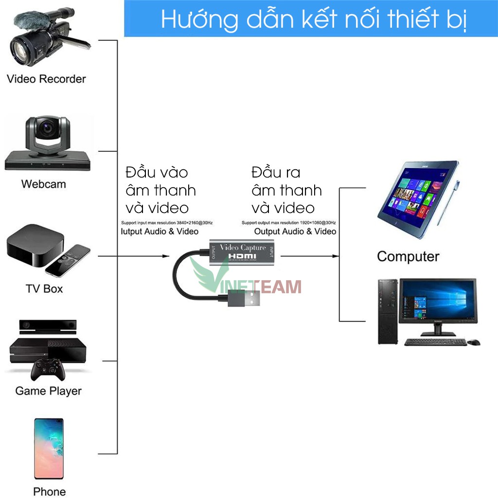 Thiết Bị Thu Hình Ảnh Hdmi Qua Usb 3.0 Hd 1080p caputure hình ảnh từ máy quay và các thiết bị ghi hình khác hỗ trợ livestream ... trên các nền tảng xã hội