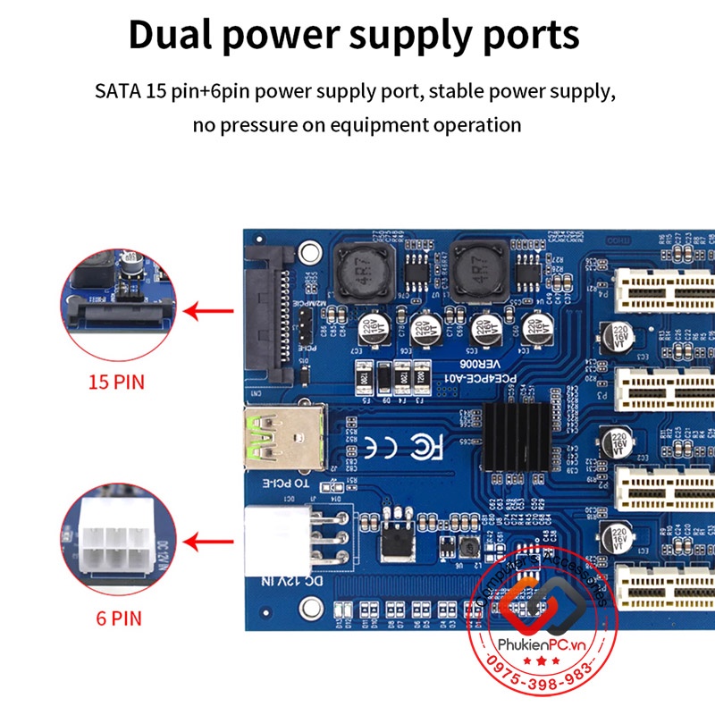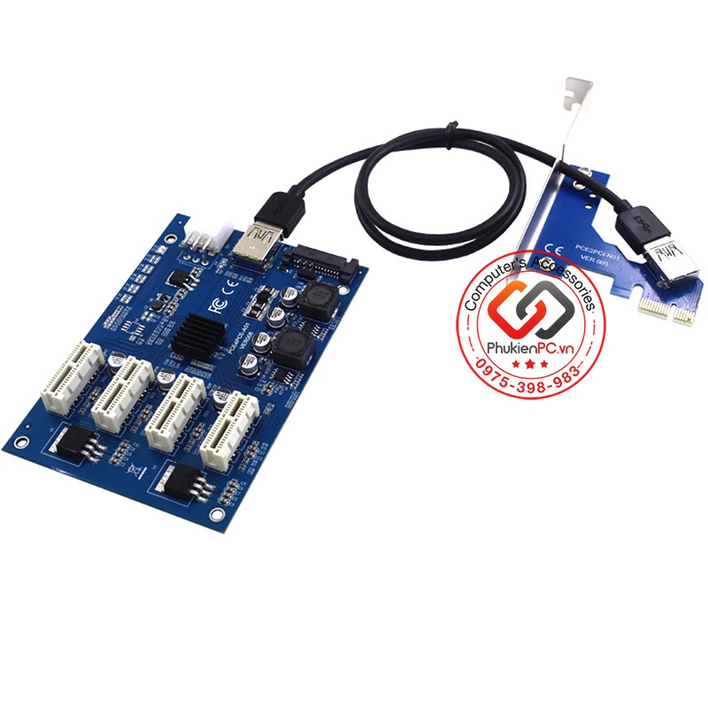 Máy tính & Laptop > Linh Kiện Máy Tính > Khác || Card Riser mở rộng PCIe 1x ra 4 Port PCIe 1X lắp cùng lúc 4 cardCòn hàng