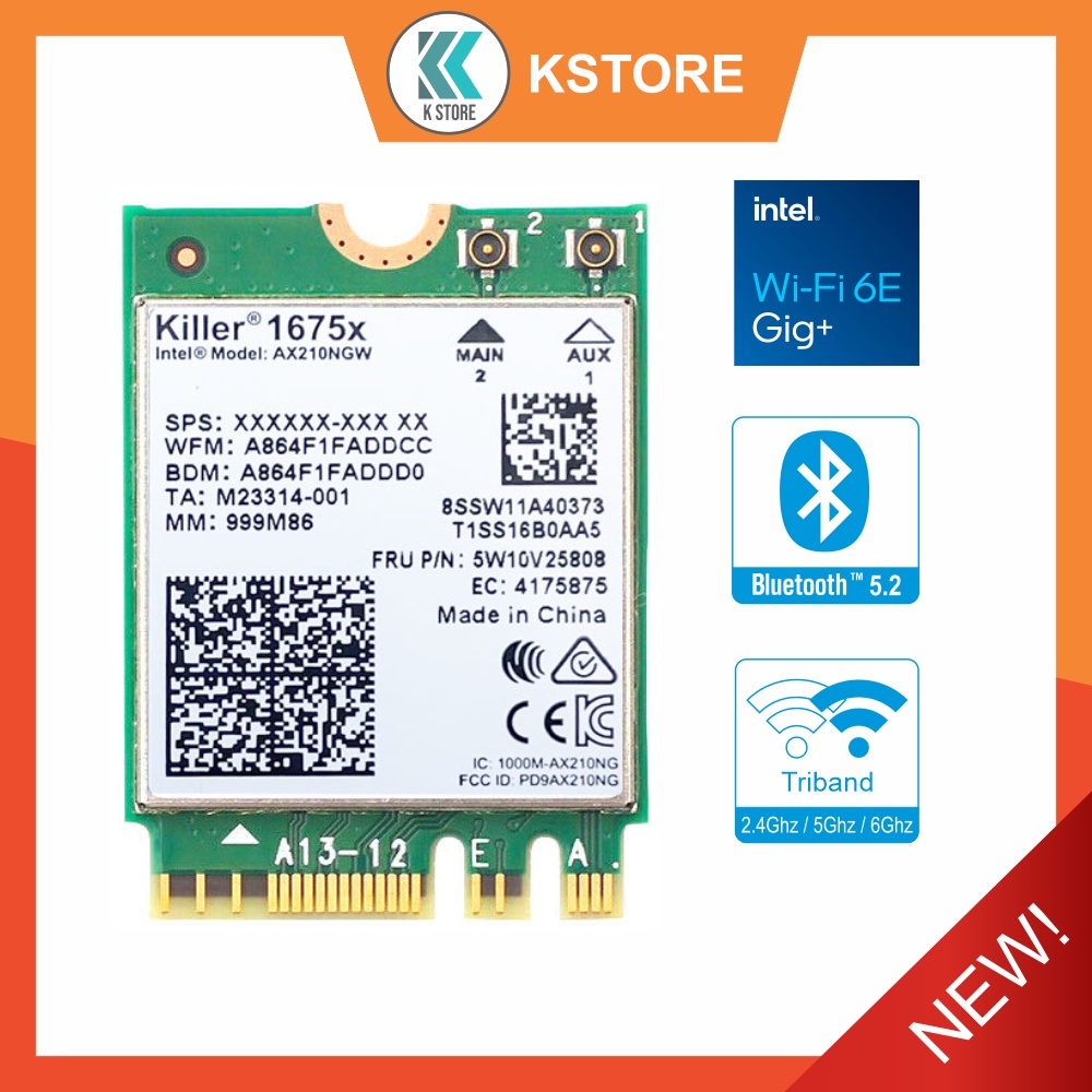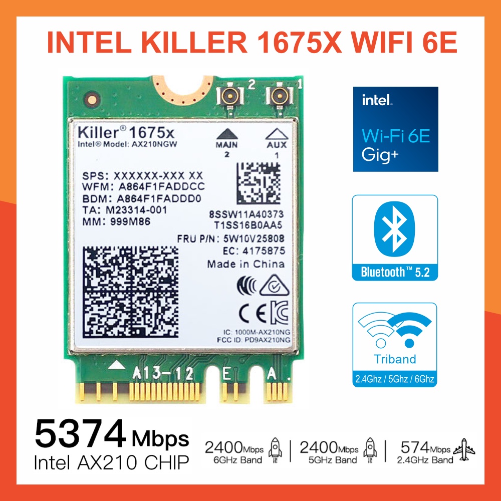 - Intel WIFI-6 AX210 / Intel Killer 1675x: model mới nhất 2021 hỗ trợ 3 băng tần 2.4Ghz/5Ghz/6Ghz, Tốc độ tối đa 2400M. Bluetooth 5.2 (Gaming mode)
