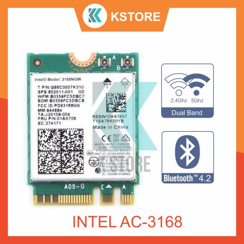 - Intel AC 3168: Tốc độ tối đa 433M. Bluetooth 4.2