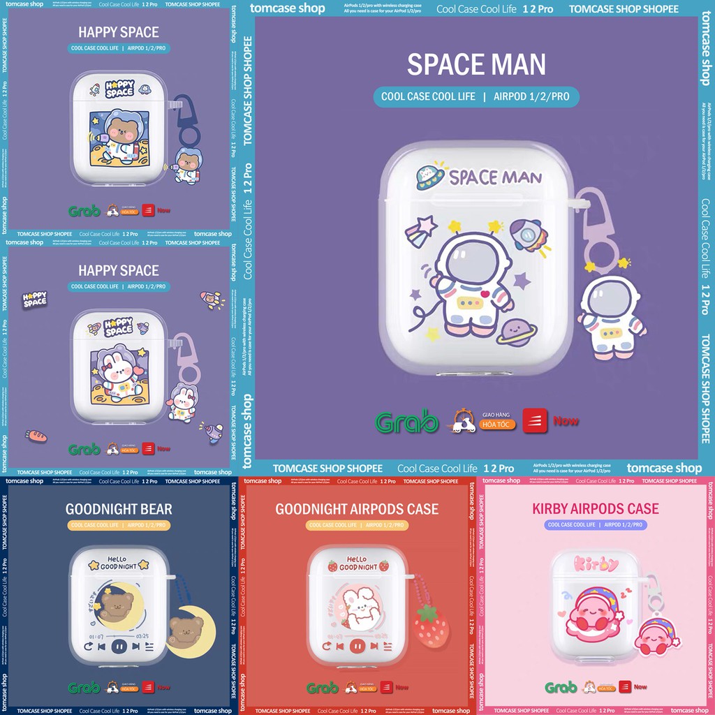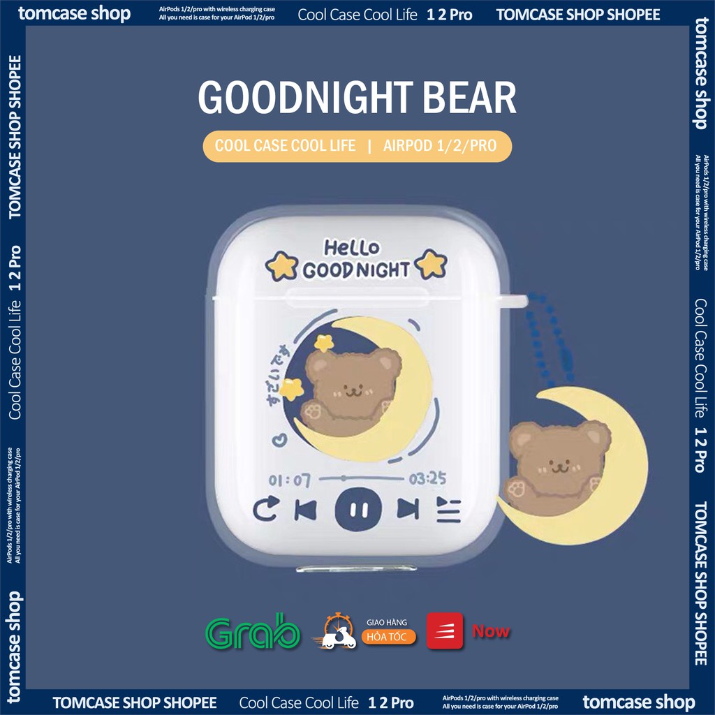 Giới thiệu Case Airpod 2/pro ốp trong suốt Tom case, Vỏ Airpods trong in hình dễ thương bảo vệ tai nghe