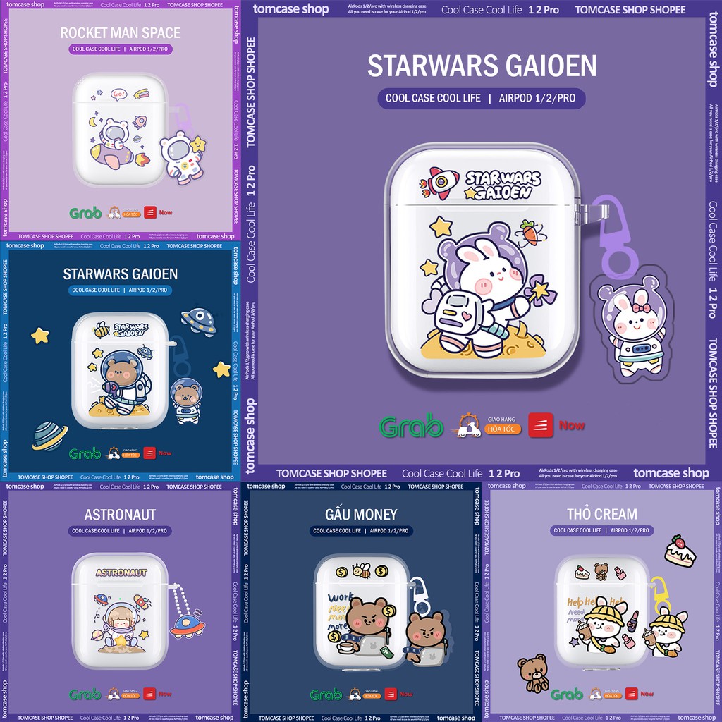 Vỏ Ốp Case Ốp Vỏ Airpod 2/pro/3/1, Vỏ Ốp Case bảo vệ bao đựng tai nghe bluetooth ốp/ Case Ốp Vỏ Airpod 2/pro, bộ sưu tập du hành vũ trụ - TOM CASE