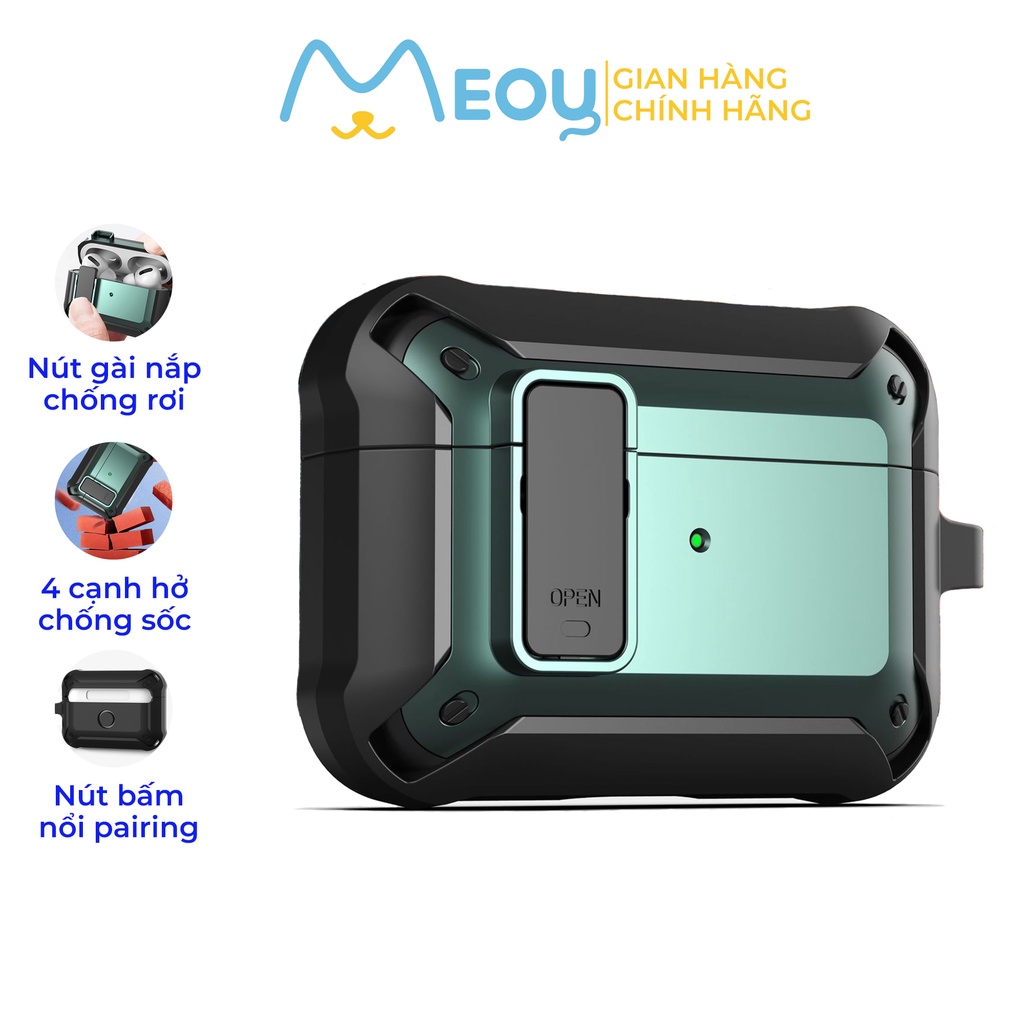 Case airpod pro chống sốc cho airpods 1/2/3/pro, thiết kế có nút gài nắp, chống rơi và bảo vệ tai nghe - Mèo Ú
