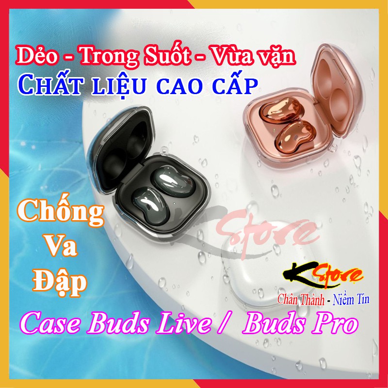 Case Buds Live - Ốp Buds Pro tai nghe Samsung Galaxy trong suốt, vừa vặn, chống va đập cực tốt, siêu đẹp mới nhất 2021