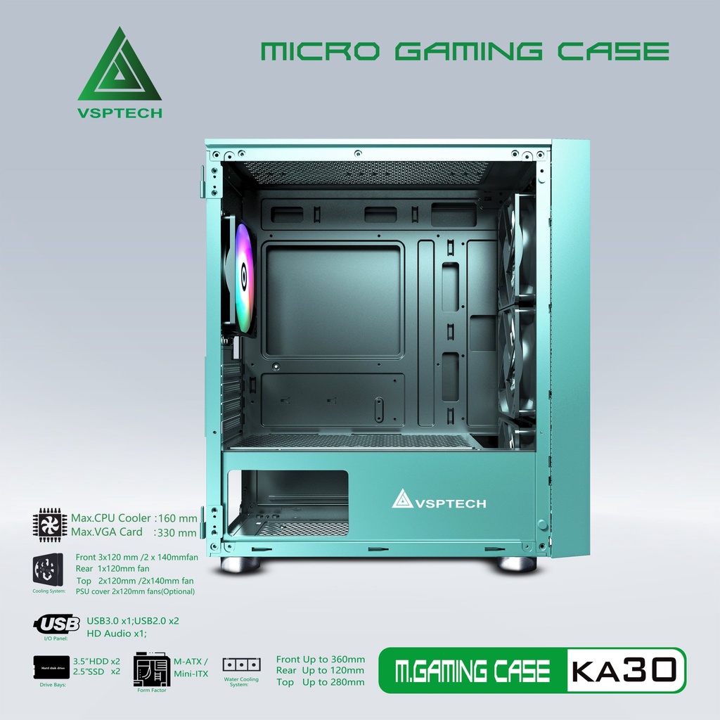 Máy tính & Laptop > Linh Kiện Máy Tính > Case Máy Tính || [Mã 273ELHA100K0 hoàn 7% đơn 500K] Case Gaming VSP KA30 Mini Tower (Màu Đen-Trắng-Hồng- Xanh)Còn hàng