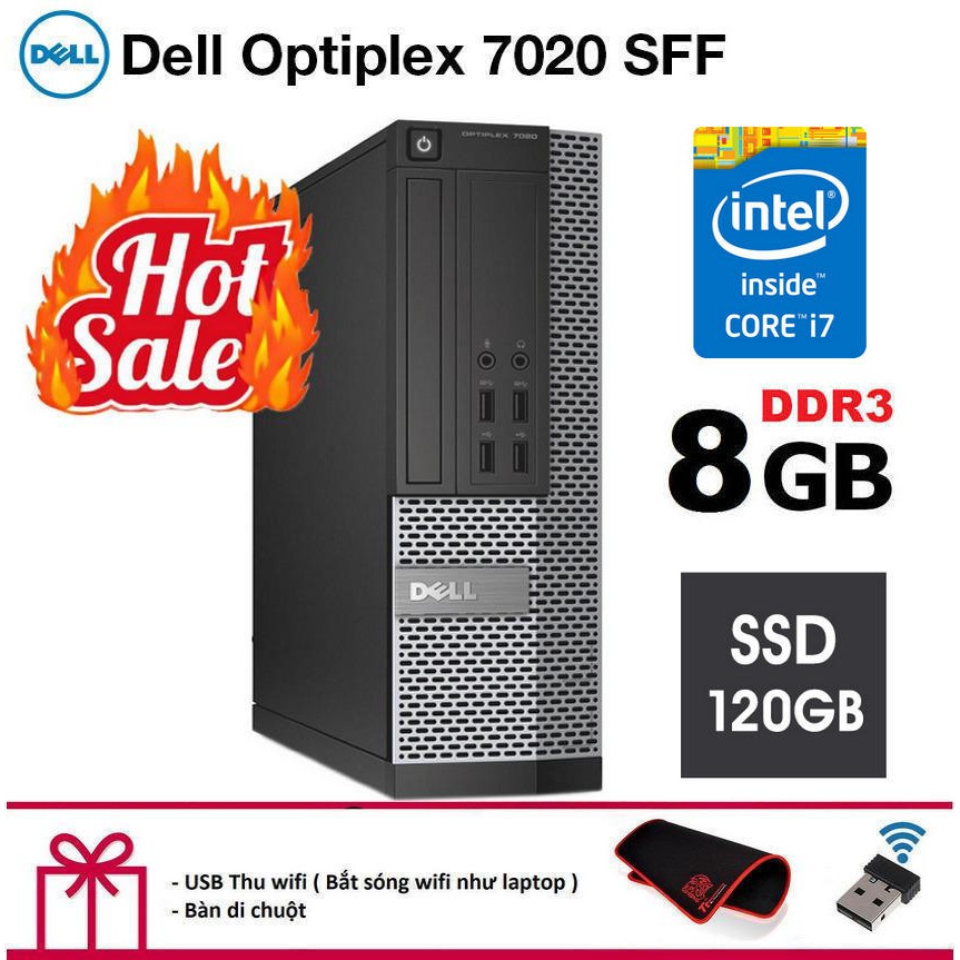 Case máy tính để bàn DELL Optiplex 3020 - 7020 Core i7 4770, Ram 8GB, Ổ cứng SSD 120GB.Tặng usb wifi không dây.