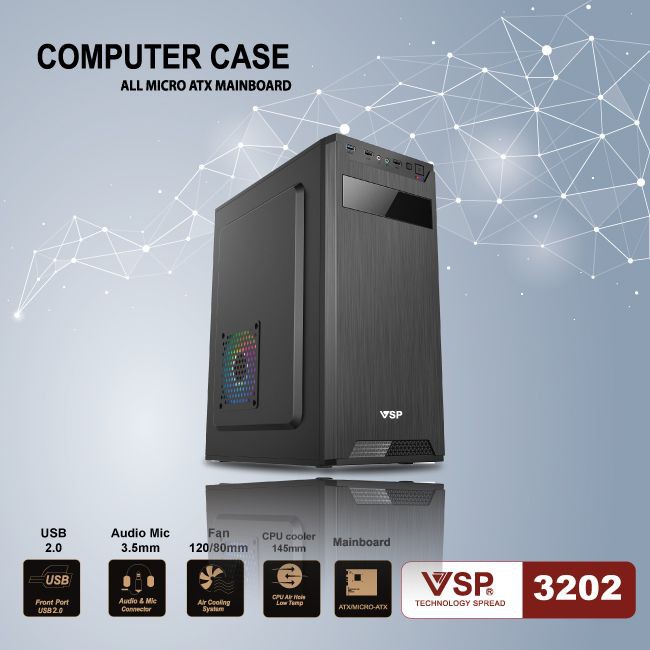 Case VSP Chuyên Văn Phòng Chuẩn ATX.Case VSP 3202 phù hợp cho các dự án Văn Phòng và những phòng Game với kinh phí thấp.