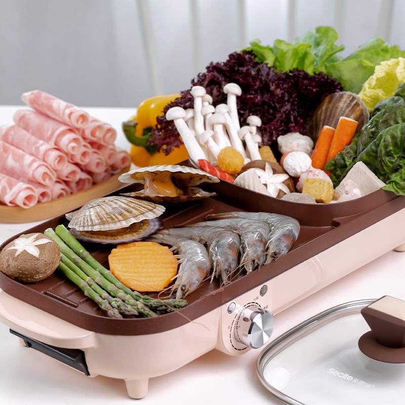 Cát Á - Bếp Lẩu Nướng Điện Không Khói HCN - Nồi lẩu nướng 2 trong 1 không khói 2 ngăn cực tiện lợi