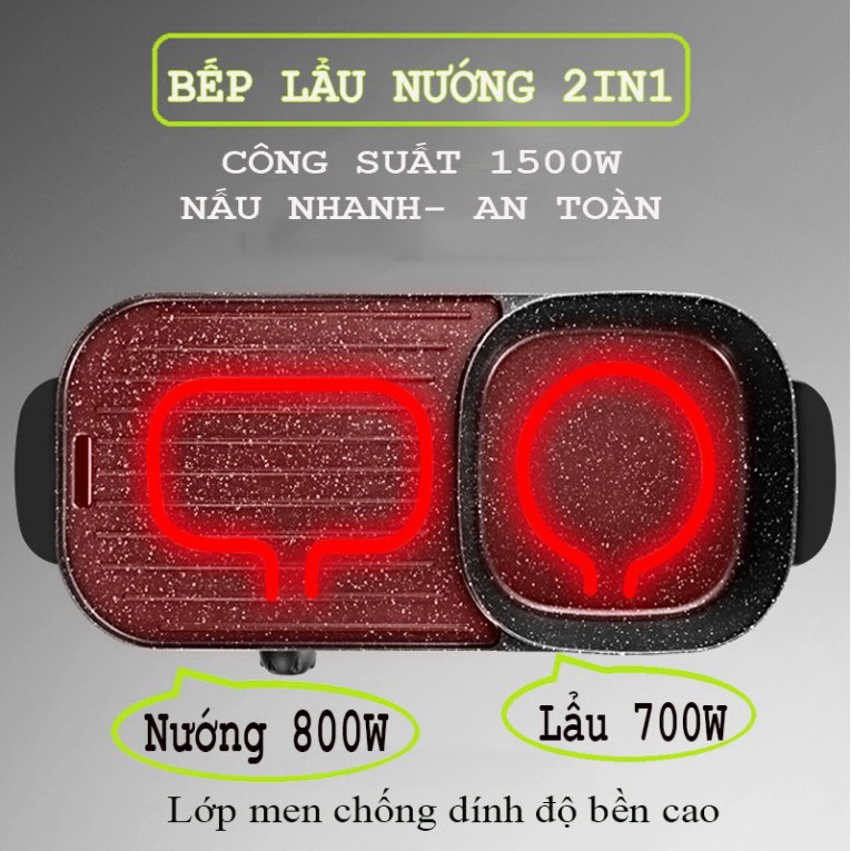 BẾP NẨU NƯỚNG⚡ ĐA NĂNG ⚡ Nồi lẩu nướng không khói 2 ngăn cực tiện lợi✅THÔNG TIN SẢN PHẨM: