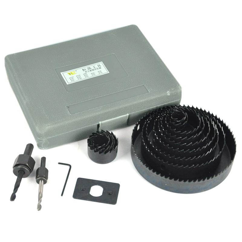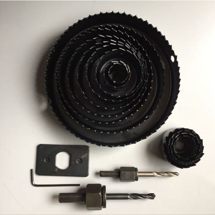 Bộ cắt gỗ hình tròn - Mui khoan khoet lo tron loại tốt, gồm 13 lưỡi khoét từ 19-127mmBộ dụng cụ khoét lỗ chuyên dụng cho bề mặt thạch cao, gỗ, nhôm alu