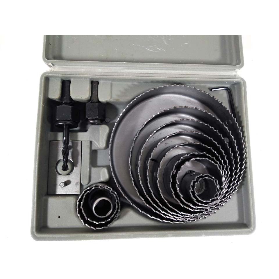 Gồm 13 lưỡi khoét tròn đường kính:Ø19, Ø22, Ø25, Ø28, Ø32, Ø38, Ø44, Ø54, Ø64, Ø76, Ø89, Ø102, Ø127mm