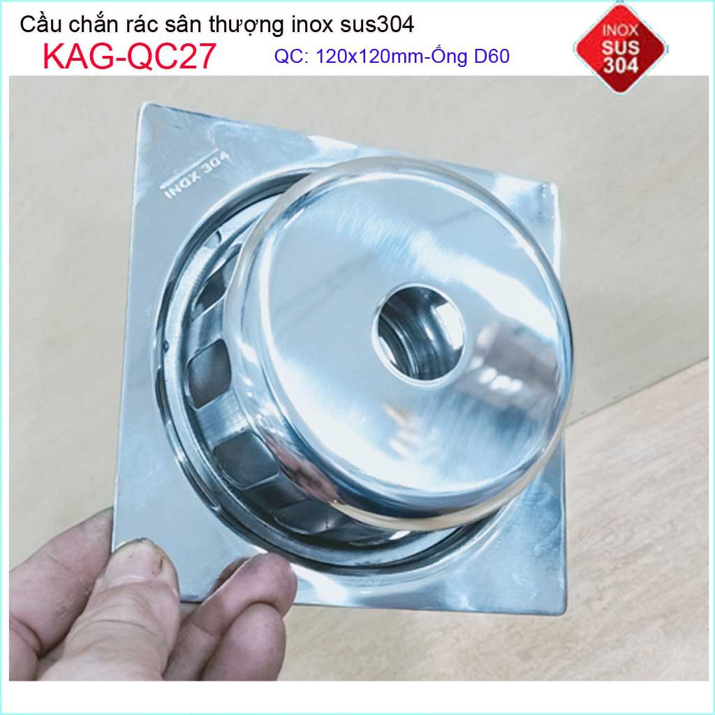 Cầu chắn rác đế vuông 12x12 D60 KAG-QC27, thoát nước sân thượng SUS304 ống 6cm thoát nhanh chắn rác tốt
