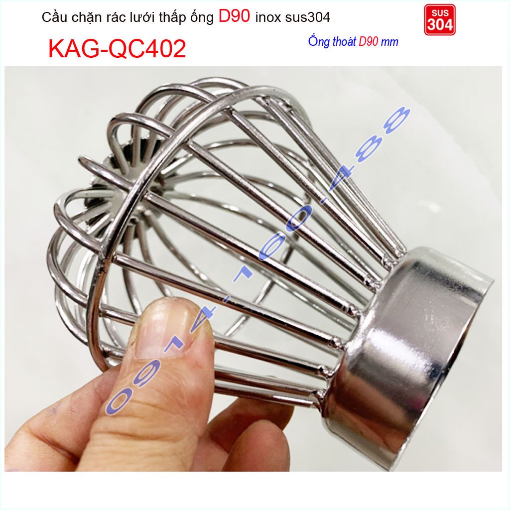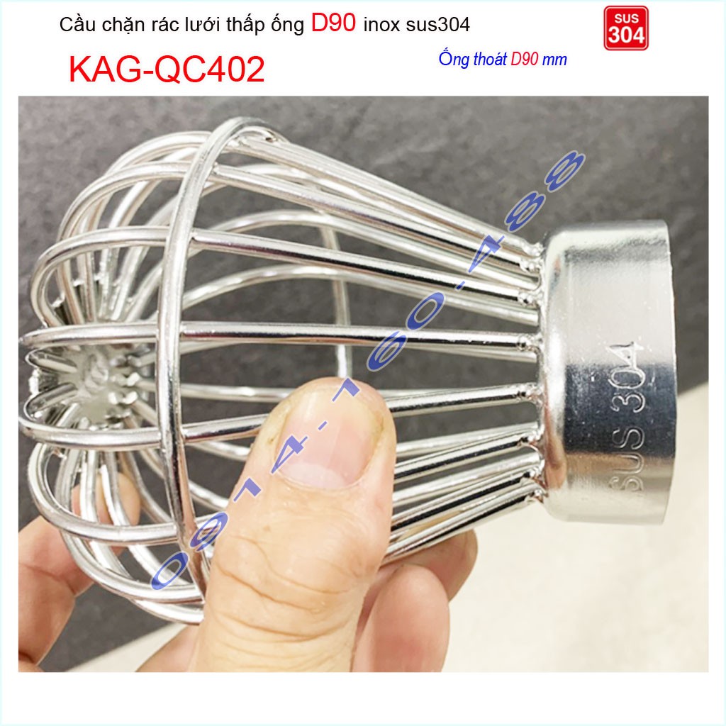 Cầu chắn rác lưới đế thấp KAG-QC402-ống D90, Cầu thoát nước mưa SUS304 inox dày cao cấp