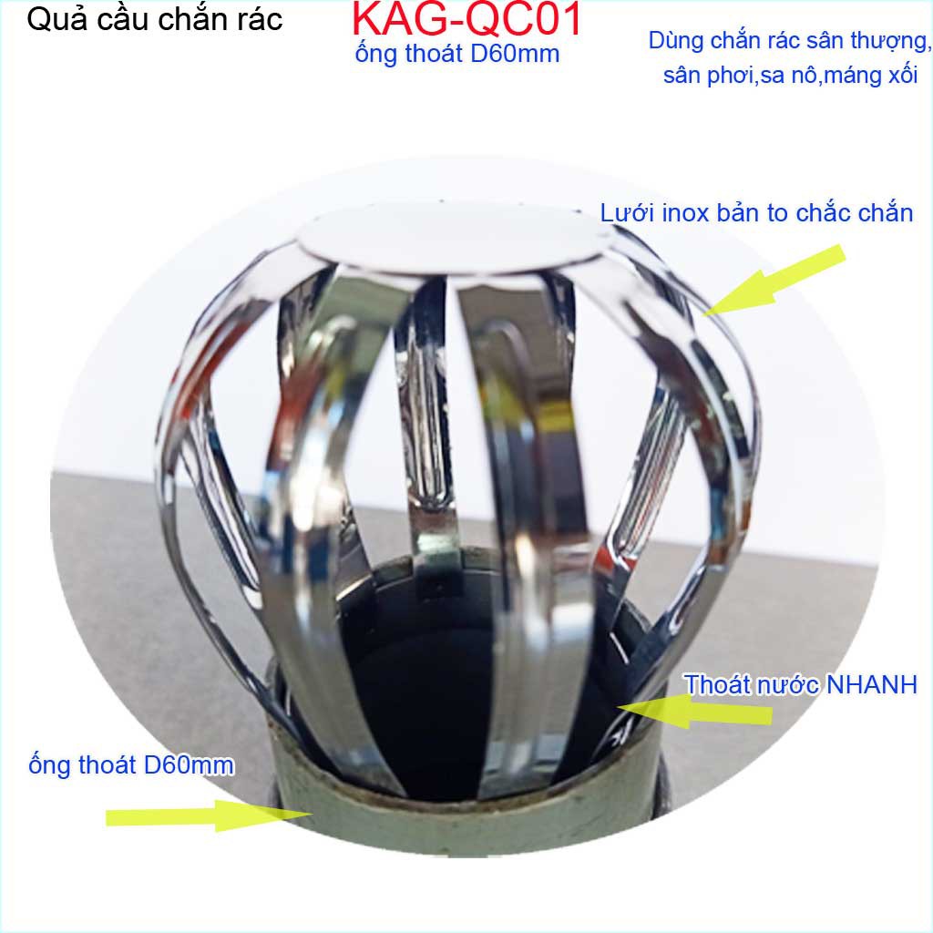 Cầu chặn rác sân thượng inox, cầu chắn rác D60 KAG-QC01 dùng thả vào ống thoát nước đường kính 6cm (60mm)