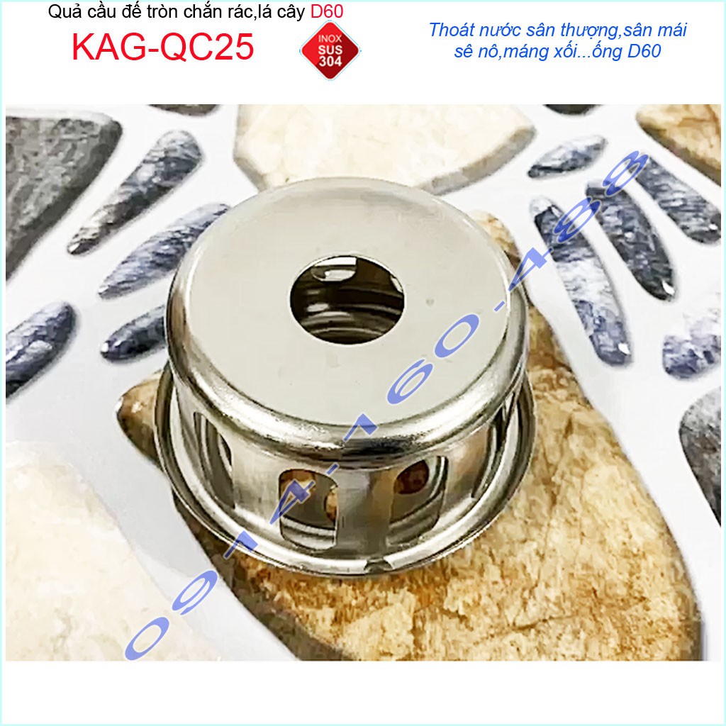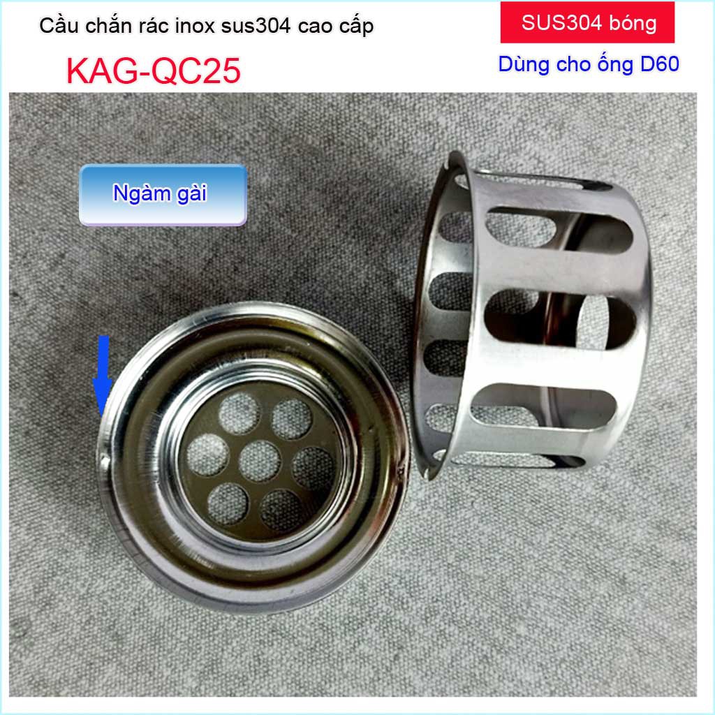 Cầu chắn rác sân thượng inox SUS304, cầu chắn rác, cầu thoát nước mưa D60 KAG-QC25 dùng cho ống thoát nước đường kính 6cm(60mm). Lắp trực tiếp vào ống thoát nước