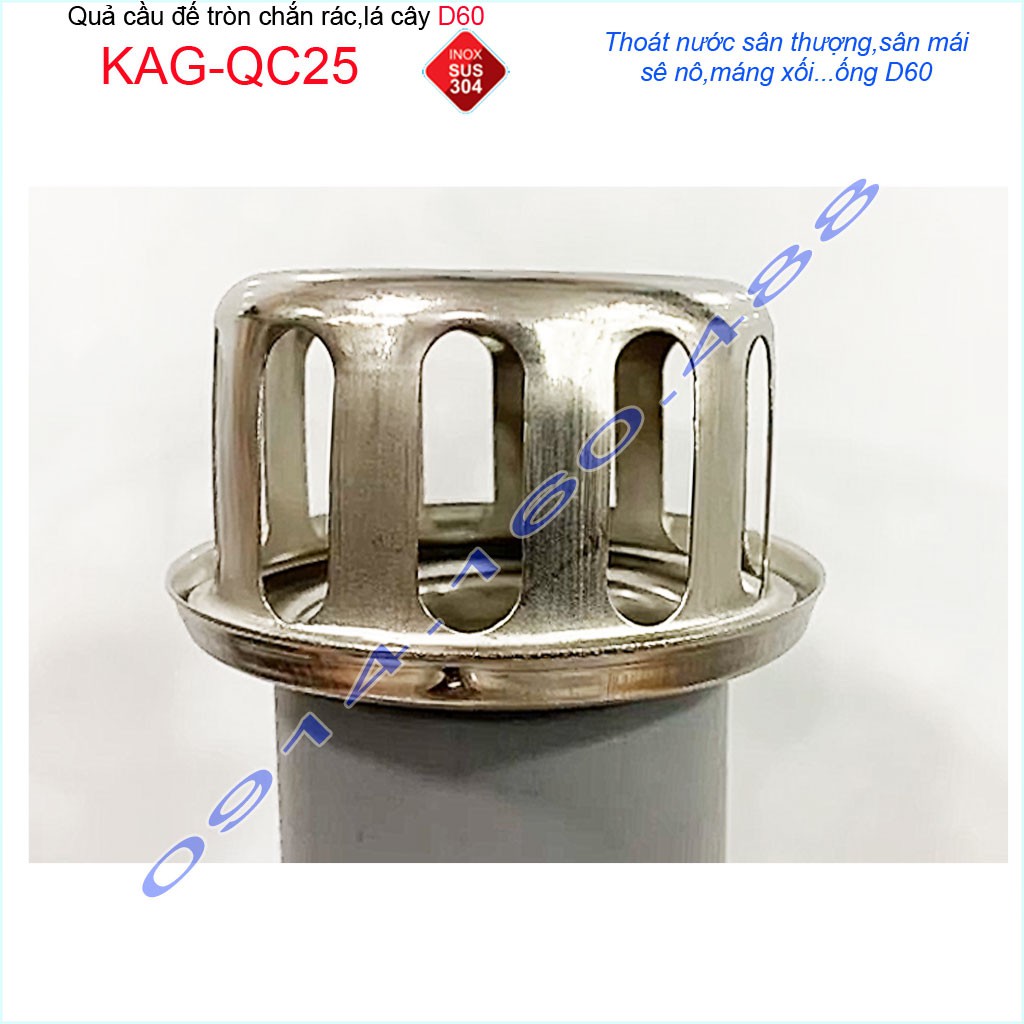 Cầu chắn rác sân thượng KAG-QC25 inox SUS304, cầu chặn rác đặt miệng ống D60 thoát nước mưa thoát nước nhanh