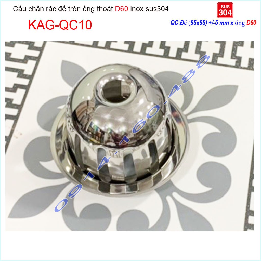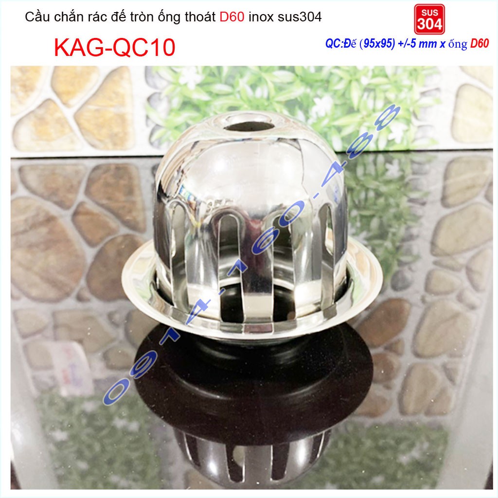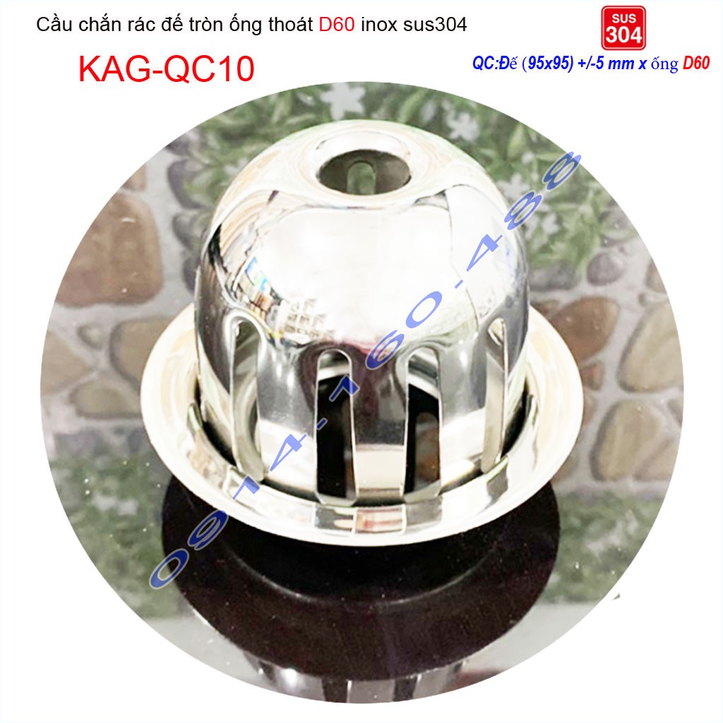 Cầu chắn rác sân thượng inox SUS304, cầu chắn rác D60 KAG-QC10 dùng cho ống thoát nước đường kính 6cm (60mm)