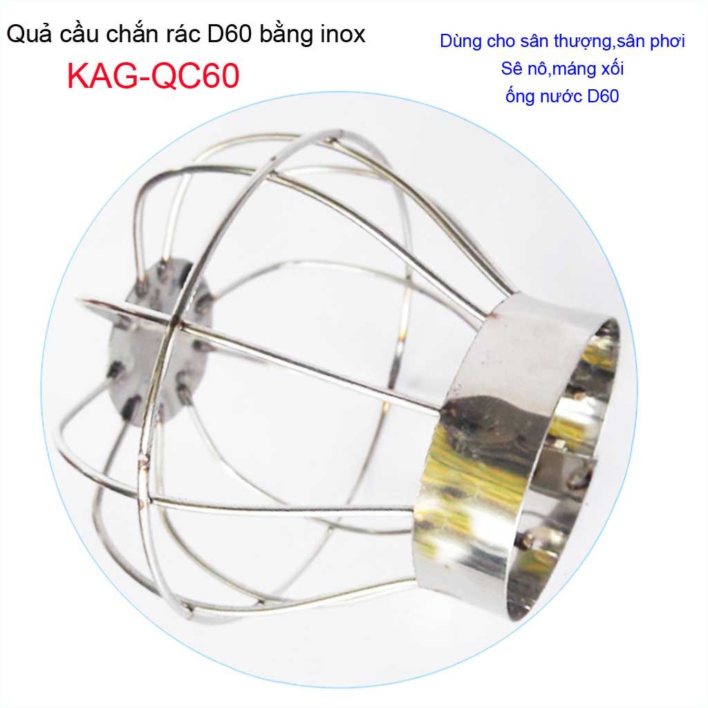 Cầu chặn rác sân thượng inox, cầu chắn rác D60 KAG-QC60 dùng thả vào ống thoát nước đường kính 6cm (60mm)