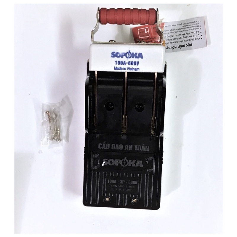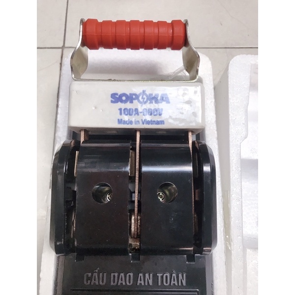 MÔ TẢ SẢN PHẨM : Cầu dao 3 pha 100A ( Cực đúc ) SOPOKA- Cầu dao được cấu tạo đế sứ , tay đẩy sứ cách điện