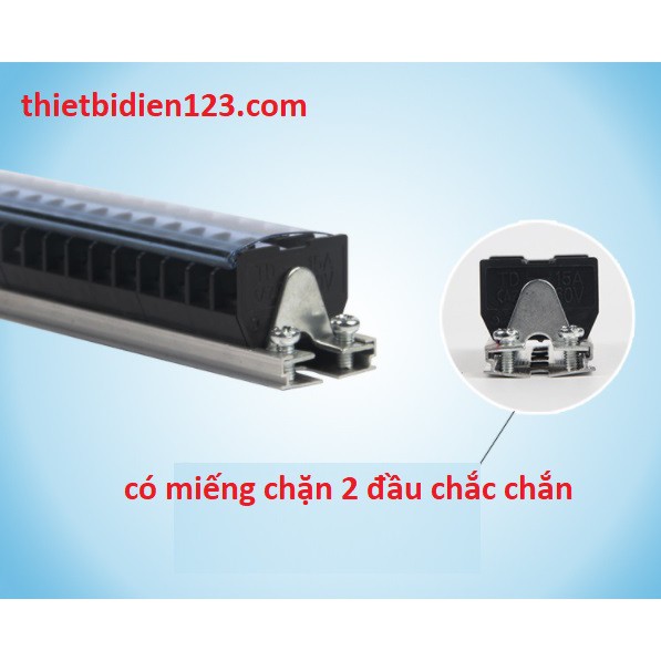 Cầu đấu điện chất lượng cao 15ACầu đấu điều khiển kết hợp đế thanh rail nhôm , hai đầu có chốt định vị chắc chắn