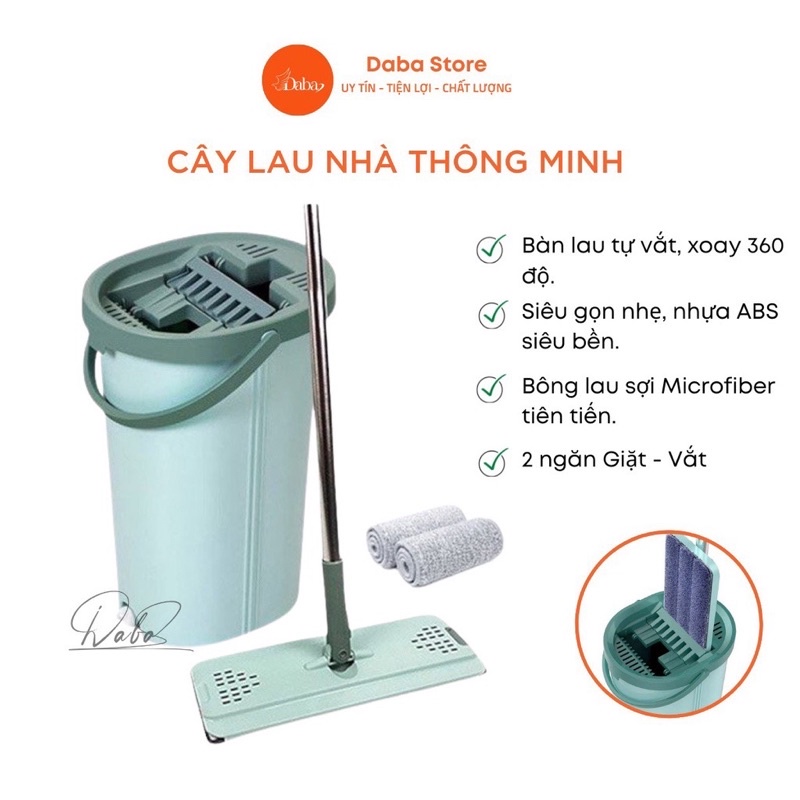 ✓ Siêu gọn nhẹ, có kèm thùng lau nhà, cây lau nhà inox, bông lau nhà, mua về là sử dụng ngay.