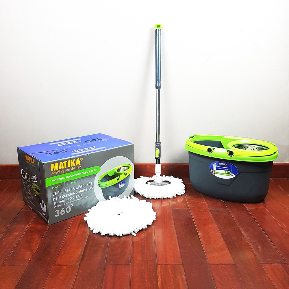 - Bộ chổi lau nhà 360 độ Matika có 2 bông lau có thể sử dụng luân phiên