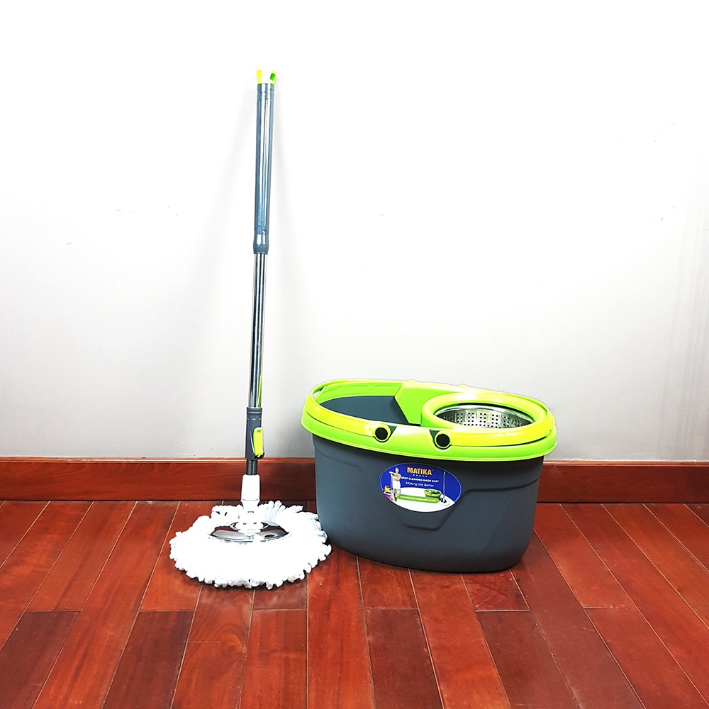 - Bộ cây lau nhà 360 độ Matika MTK-92 thiết kế nổi bật với sự kết hợp tinh tế của 2 tông màu xanh lá và ghi sang trọng nhưng không kém phần trẻ trung.